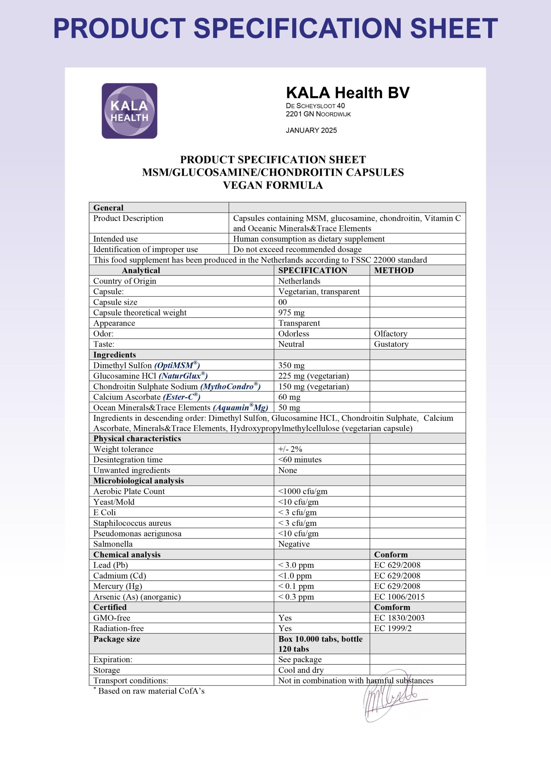 Das Ergebnis ist ein Nahrungsergänzungsmittel, dem Sie voll vertrauen können. Das vollständige Produktspezifikationsblatt mit allen Testergebnissen ist auf Anfrage erhältlich.