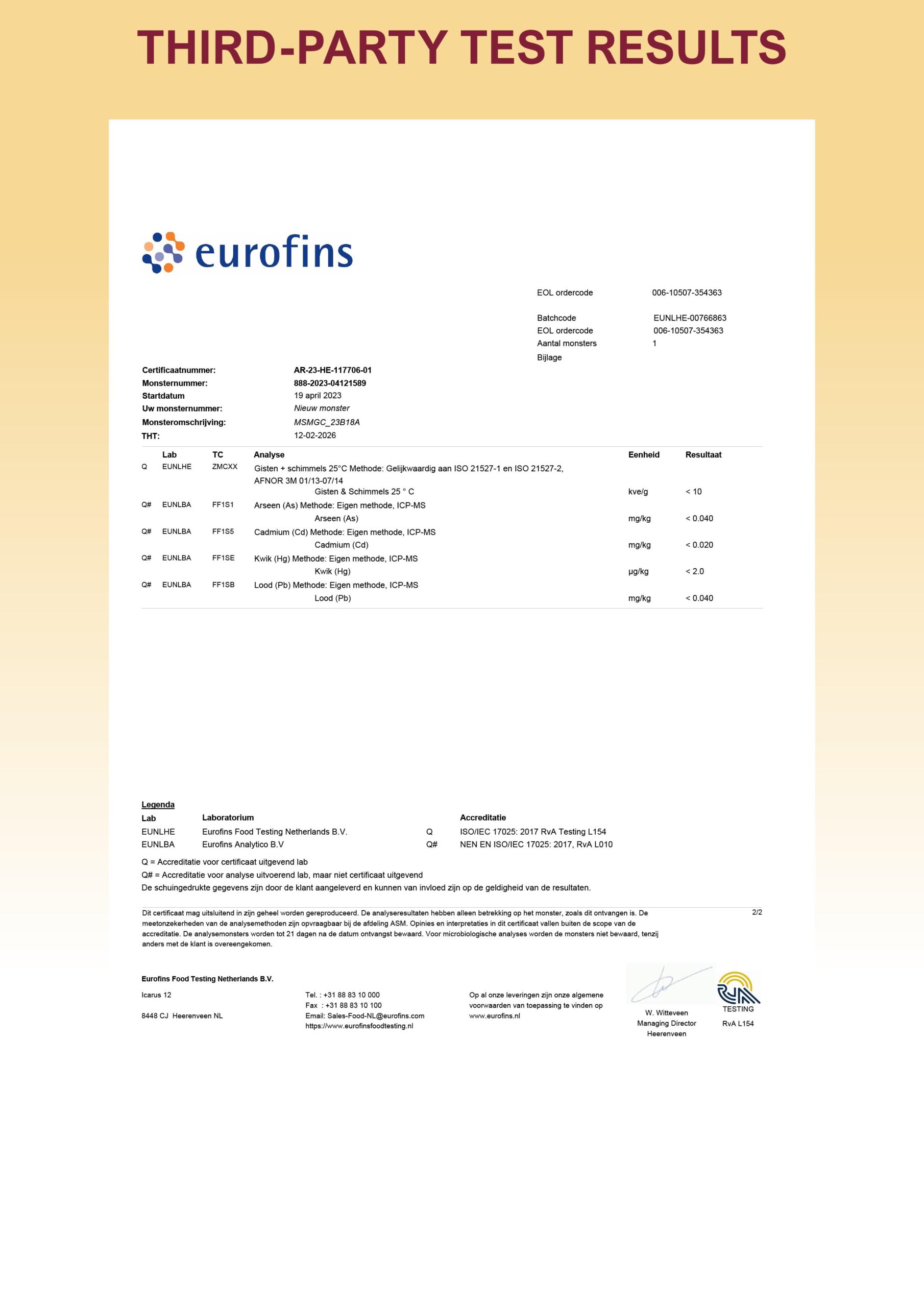 - FSSC 22000 zertifiziert: hergestellt in unserer eigenen zertifizierten niederländischen Einrichtung nach höchsten Lebensmittelsicherheitsstandards