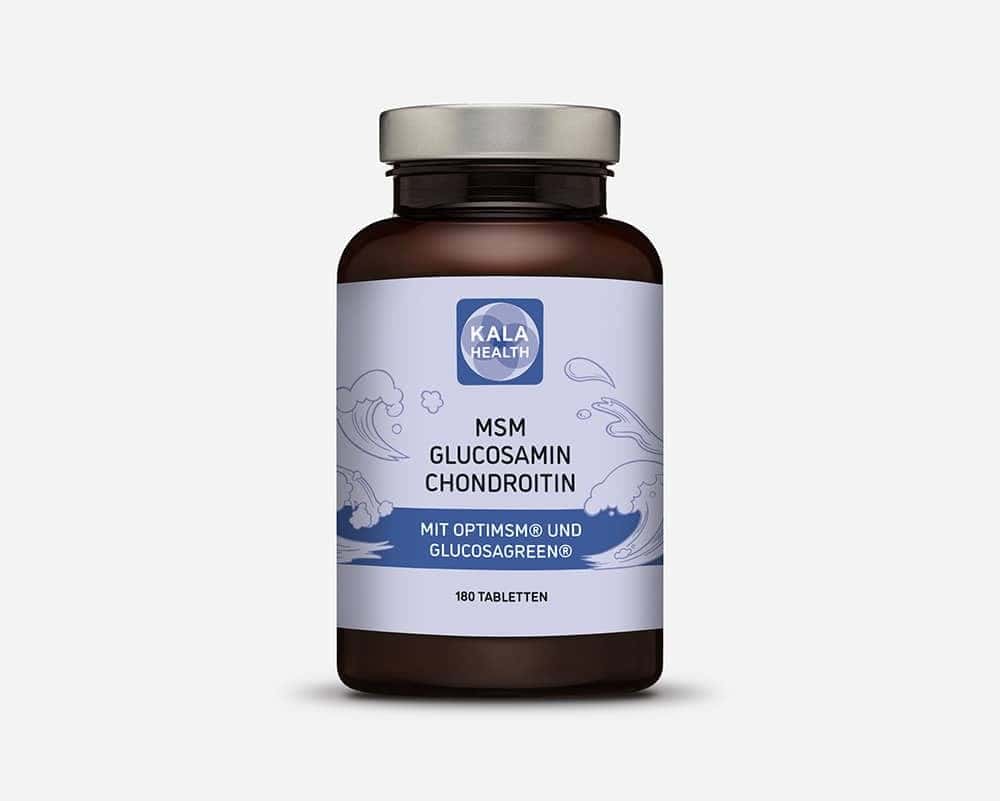 MSM GC vereint die Kraft von vier sorgfältig ausgewählten Inhaltsstoffen: MSM, Glucosamin, Chondroitin und Vitamin C. Diese Formel wurde speziell von den Produktentwicklern von Kala Health entwickelt, um die natürliche Beweglichkeit zu unterstützen. Das Besondere an MSM GC ist, dass ausschließlich hochwertige, patentierte Markeninhaltsstoffe verwendet werden: OptiMSM®, NaturGlux®, ChondroPure® und Ester-C®.