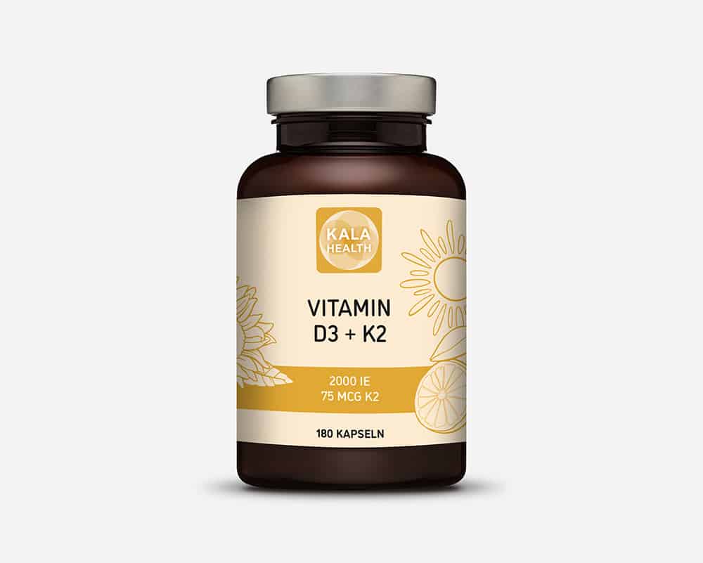 Für jeweils 5000 IE Vitamin D3 werden 180 µg Vitamin K2 (MK-7) empfohlen. Unsere Formel enthält 2000 IE D3 und 75 µg K2, was ideal auf dieses Verhältnis abgestimmt ist.
