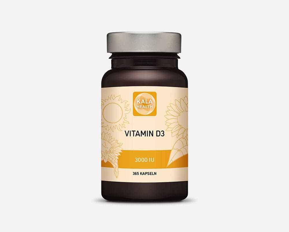 Die Vitamin D 3000 IE 180 und 365 Kapseln von Kala Health enthalten 75 µg Vitamin D3 (Cholecalciferol), ausgedrückt in 3000 IE (Internationale Einheiten), gewonnen aus Schafwollfett. Diese Dosierung ist besonders geeignet für Situationen, in denen ein erhöhter Bedarf an Vitamin D besteht, wie in den Wintermonaten. Möchten Sie das Vitamin D von Kala Health bestellen? Siehe oben genanntes Produkt!